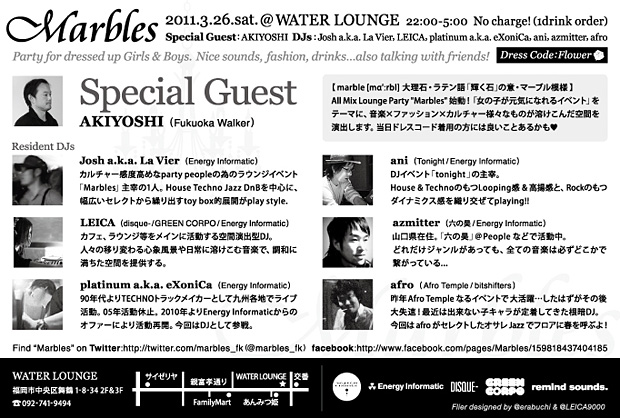 3/26(土)には親富孝のWATER LOUNGEにてMarblesレセプションパーティー開催!