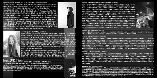 2003年2月、DJ、Designer、VJから構成される7NiNE Productionsの設立に参加。同年、7NiNE Productionsがオーガナイズするマンスリーのドラムンベースパーティー “ZERO” の始動に伴い、レジデントDJを務める。 Velocityのプレイは、フロアのヴァイブをトレースし、ハード、スムース… オーディエンスが求める音をフロアに響かせている。2005年にはVJソフト”Motion Dive Tokyo”のSound Effectを手がけるなどドラムベースにとらわれない活動を展開。2008年イシバシ楽器、Pioneer主催のC.N.S (CDJ New Style) Battleの第一回大会ではCDJ、Mixer、Effectを巧みに操り、そのスキルを余すこと無く発揮した結果、準優勝の栄冠に輝き日本トップクラスの実力を証明した。オリジナルチューンがCommixやRandom Movement、さらにはBBC 1XtraでCrissy CrissによりOn Airされるなど、多くのDJによりサポートされている中、日本を代表するアーティストMakotoによるNewレーベル”HE Digital”よりShadow Rollがリリースされ、Beatportやtrackitdown等の主要サイトでチャートインし、さらに今後の動向に注目が集まっている。