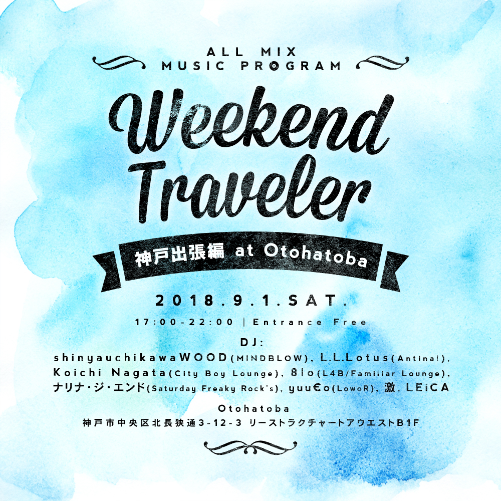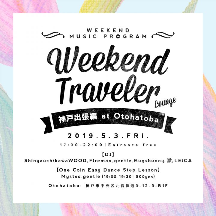 204月 2019 投稿者: Incline Weekend Traveler 神戸出張編 @Otohatoba DJ, Event planning, 兵庫 2019.5.3.Fri. @Otohatoba “Weekend Traveler Lounge” 17時~22時 Charge Free 【DJ】 ShinyauchikawaWOOD / Fireman / gentle / Bugsbunny / LE… 続きを読む