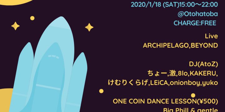 101月 2020 投稿者: Incline Tune On!! @Otohatoba DJ, 兵庫 2020.1.18.Sat. @Otohatoba “Tune On!!” 15:00〜22:00 CHARGE:FRE Live ARCHIPELAGO BEYOND DJ 8lo けむりくらげ ちょー KAKERU onionboy yuko 激 LEiC… 続きを読む