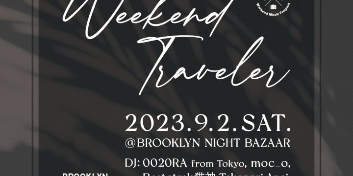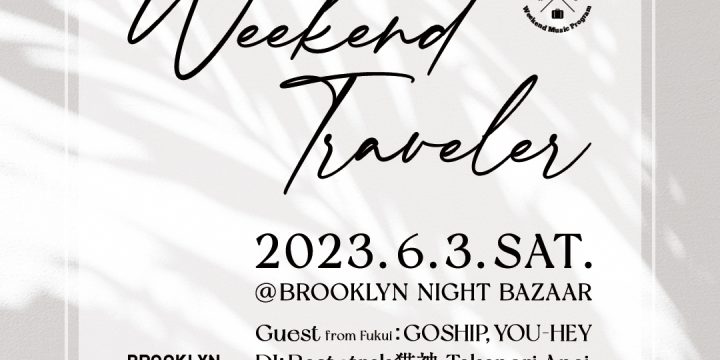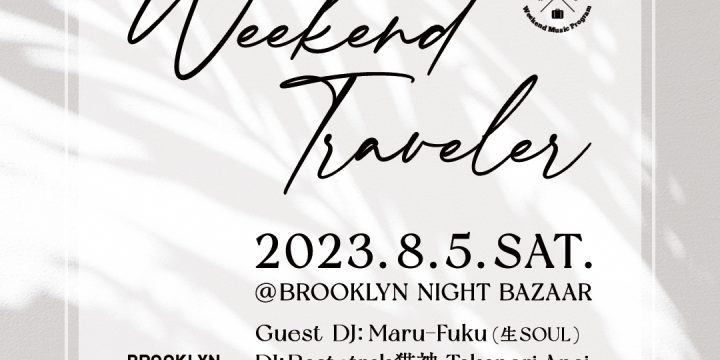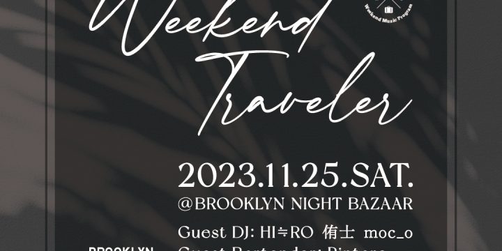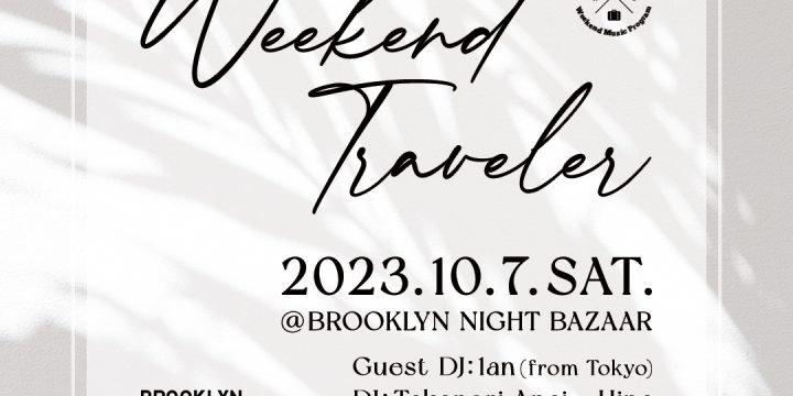 1012月 2025 投稿者: Incline Weekend Traveler New Year’s Party @BROOKLYN NIGHT BAZAAR(京都) DJ, Event planning, 京都 2026.1.3.Sat. @BROOKLYN NIGHT BAZAAR Weekend Traveler New Year’s Party Guest DJ: SBST (from Czechia) Weekend Traveler DJ: Takanori… 続きを読む