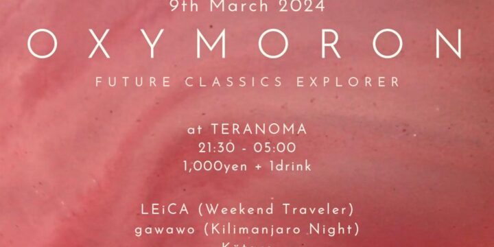 162月 2024 投稿者: Incline OXYMORON @TERANOMA(大阪) DJ, 大阪 2024.3.9.Sat. @TERANOMA OXYMORON OPEN 21:00 START 21:30 Charge ¥1,000 + 1drink DJs LEiCA (Weekend Traveler) gawawo (Kilimanjaro Ni… 続きを読む