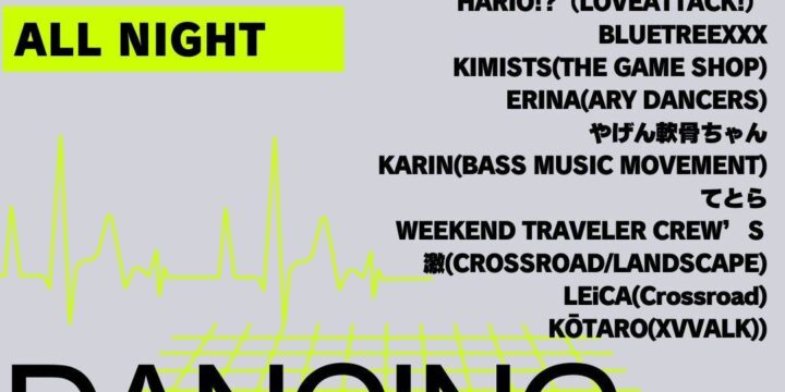 156月 2024 投稿者: Incline DANCING FRIDAY @MUSIC BAR ルイーダ(大阪) DJ, 大阪 2024.6.21.Fri. @MUSIC BAR ルイーダ DANCING FRIDAY -ALL NIGHT- 【DJ】 Takanori Anai (Harmony / OXYMORON) HARIO!?(LOVEATTACK!) BLUETREExxx… 続きを読む