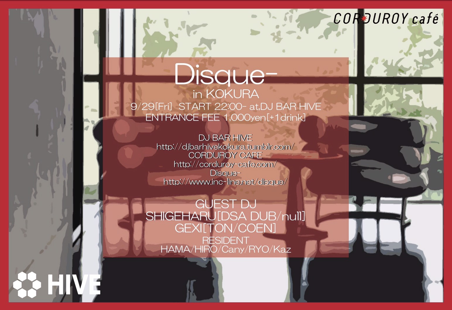 299月 2017 投稿者: Incline Disque- in KOKURA @DJ BAR HIVE Information 2017.9.29.Fri. @ DJ BAR HIVE (さらに…) 続きを読む