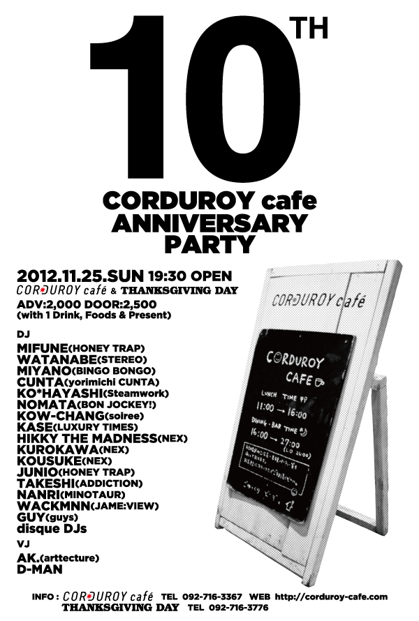 CORDUROY cafe 10TH ANNIVERSARY PARTY