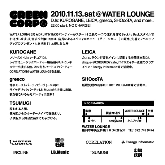 2010月 2010 投稿者: Incline 2010.11.13.Sat. @ WATER LOUNGE Flier 100mm×100mm コート110kg 4c/1c Can Badge 25mm