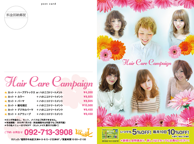 194月 2013 投稿者: Incline Hair Care Campaign DM A6 コート180kg 4c/4c Client: Hair LOGIQUE Design: Reiko Nagata