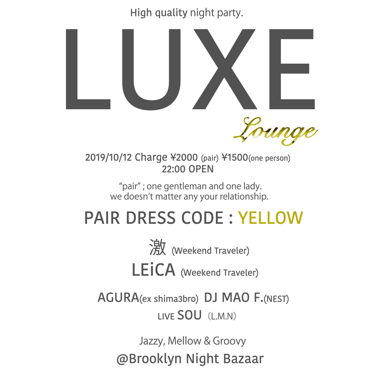 10/12(土)開催予定でしたLUXE Loungeは、台風の影響で中止となりました。残念ですが、安全を考慮してのとの事でご了承ください。