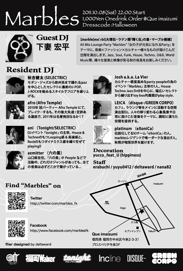 カルチャー感度高めなparty peopleの為のラウンジイベント「Marbles」主宰の1人。House Techno Jazz DnBを中心に、幅広いセレクトから繰り出すtoy box的展開がplay style.