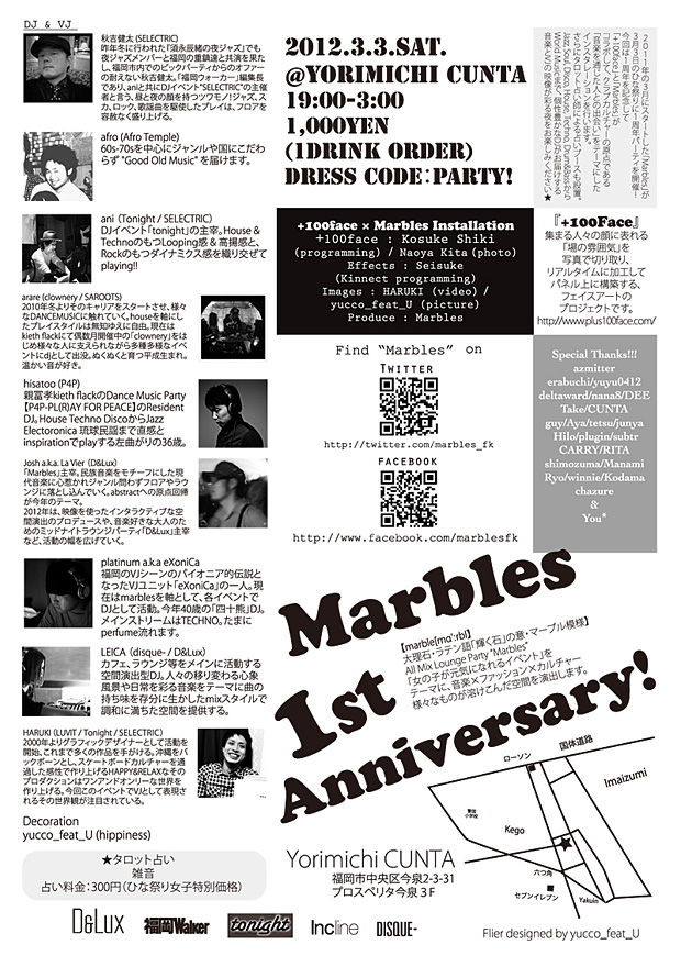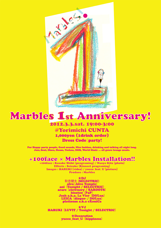 2011年の3月にスタートした「Marbles」が3月3日のひな祭りに1周年パーティを開催!