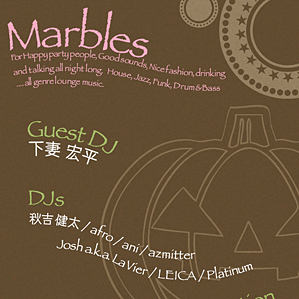「Marbles」主宰。民族音楽をモチーフにした現代音楽に心惹かれジャンル問わずフロアやラウンジに落とし込んでいく。abstractへの原点回帰が今年のテーマ。