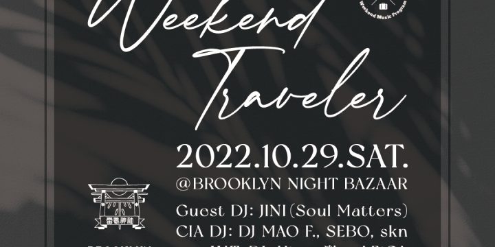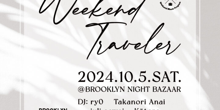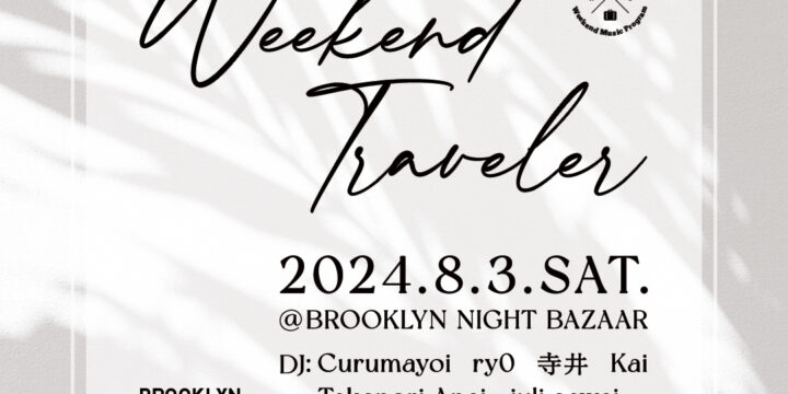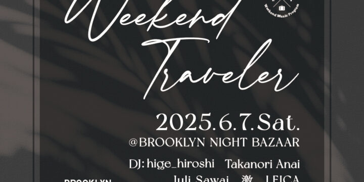 1012月 2025 投稿者: Incline Weekend Traveler New Year’s Party @BROOKLYN NIGHT BAZAAR(京都) DJ, Event planning, 京都 2026.1.3.Sat. @BROOKLYN NIGHT BAZAAR Weekend Traveler New Year’s Party Guest DJ: SBST (from Czechia) Weekend Traveler DJ: Takanori… 続きを読む