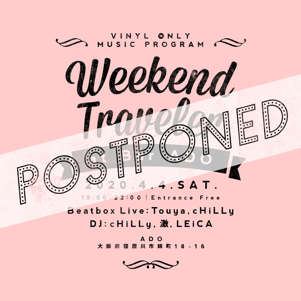 4/4(土)のWeekend Traveler 大阪編 @adochan1016 は、延期します。